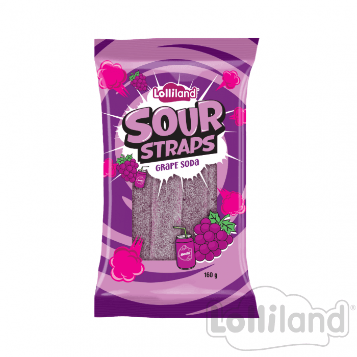 / Lolliland Sour Straps Grape Sode 12x160g